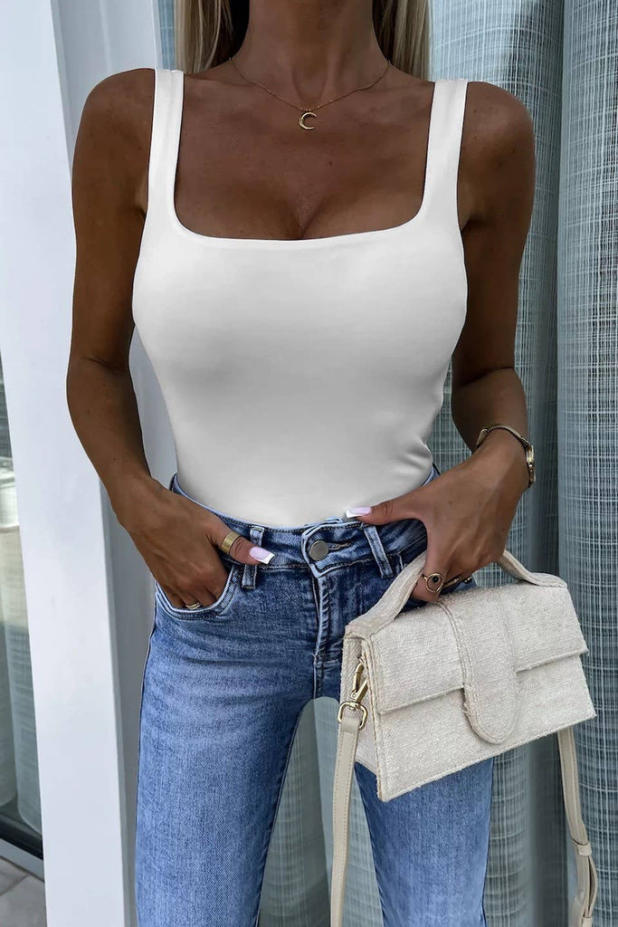 Basic Slim fit square neck white tank top