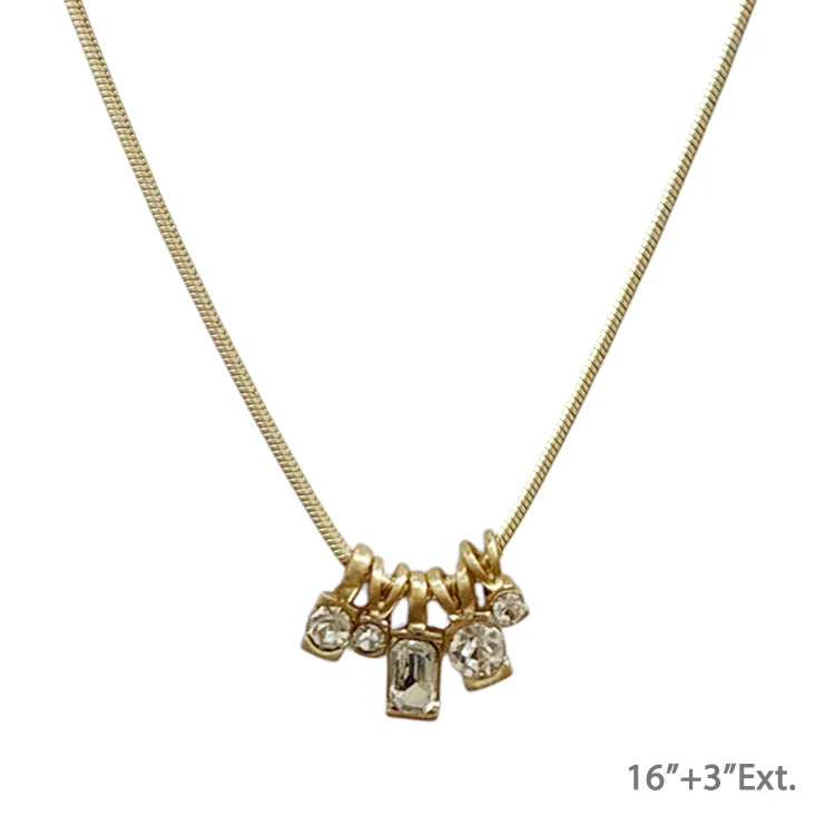 Gold 16"-18" Chain Necklace with Multi Color Rhinestone Charms Or Clear Rhinestone Charms